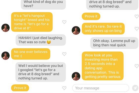 Probeer naast je ‘hey’ bijvoorbeeld ook een originele vraag te stellen. Misschien is het soms een beetje cheesy, maar je hebt wel meer kans dat je berichtje opvalt en dat je match terug reageert. Je kunt natuurlijk ook het gesprek beginnen met een grappige openingszin. Dit valt lekker op en je laat meteen zien van wat voor humor je houdt. Het allerbelangrijkste: wees vooral lekker jezelf. Je doet het natuurlijk ook voor de fun!