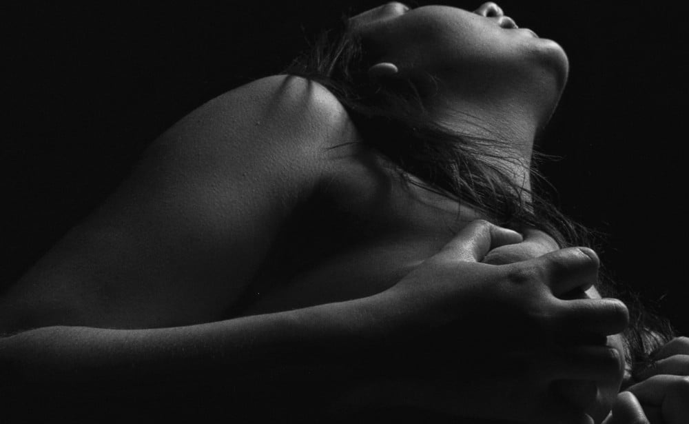 Mijn handen reiken naar de sluiting van mijn bh; ik maak hem los en laat hem op de grond vallen, naast de kleding die ik daarnet had verzameld. Ik recht mijn rug en toon hem trots mijn heerlijke zachte borsten.