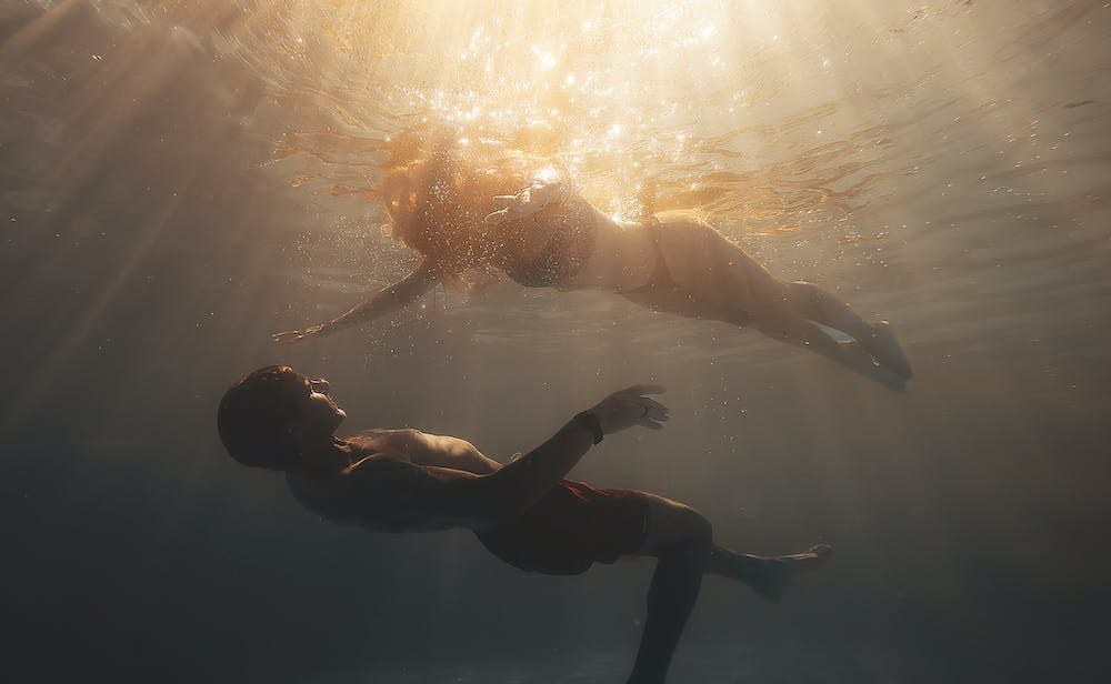 Onder water sluiten mijn benen zich om zijn heupen en als vanzelf wrijf ik mijn onderlichaam over dat van hem. Het duurt niet lang voor onze zoen overgaat in hevig hijgen. We zijn opgewonden, we kunnen het geen van beiden ontkennen.